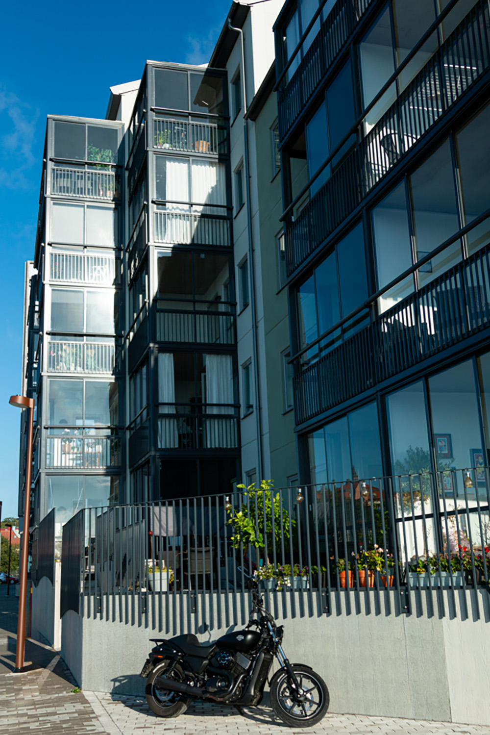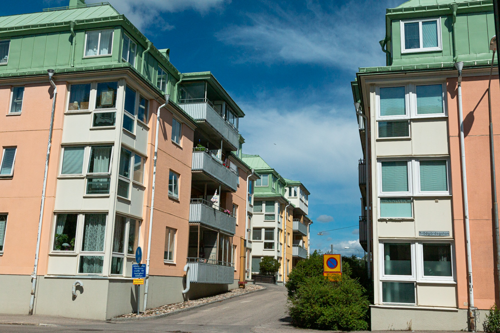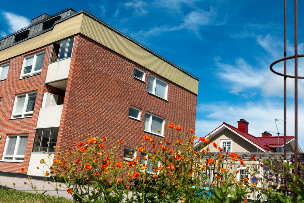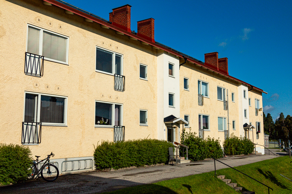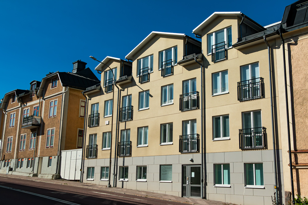 Två flerfamiljshus i 3 våningar. Centralt beläget i stadsmiljö. Nära hamnen, buss- och tågstationen. Antal lägenheter: 34