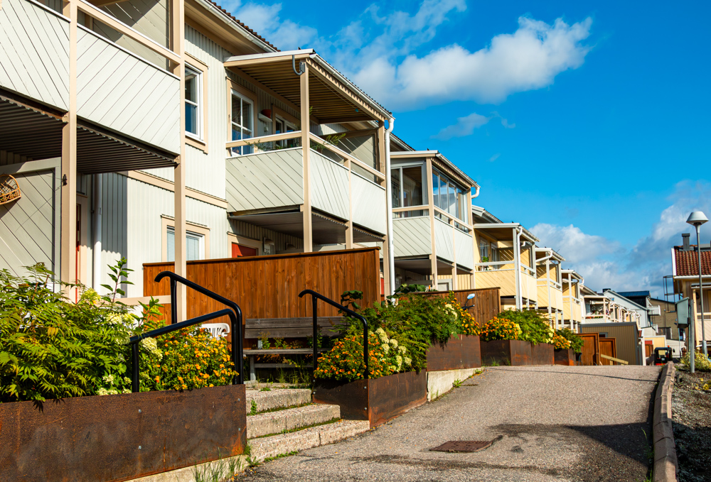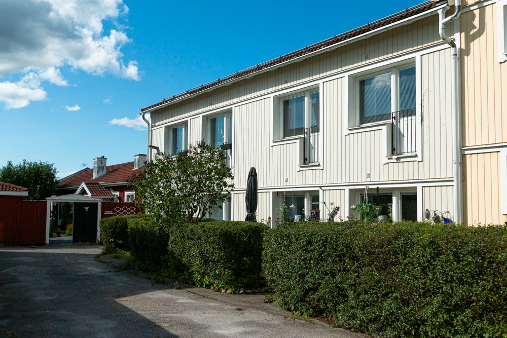 Ett område med radhuslägenheter i direkt anslutning till centrum. Egna ingångar. Fristående tvättstuga.