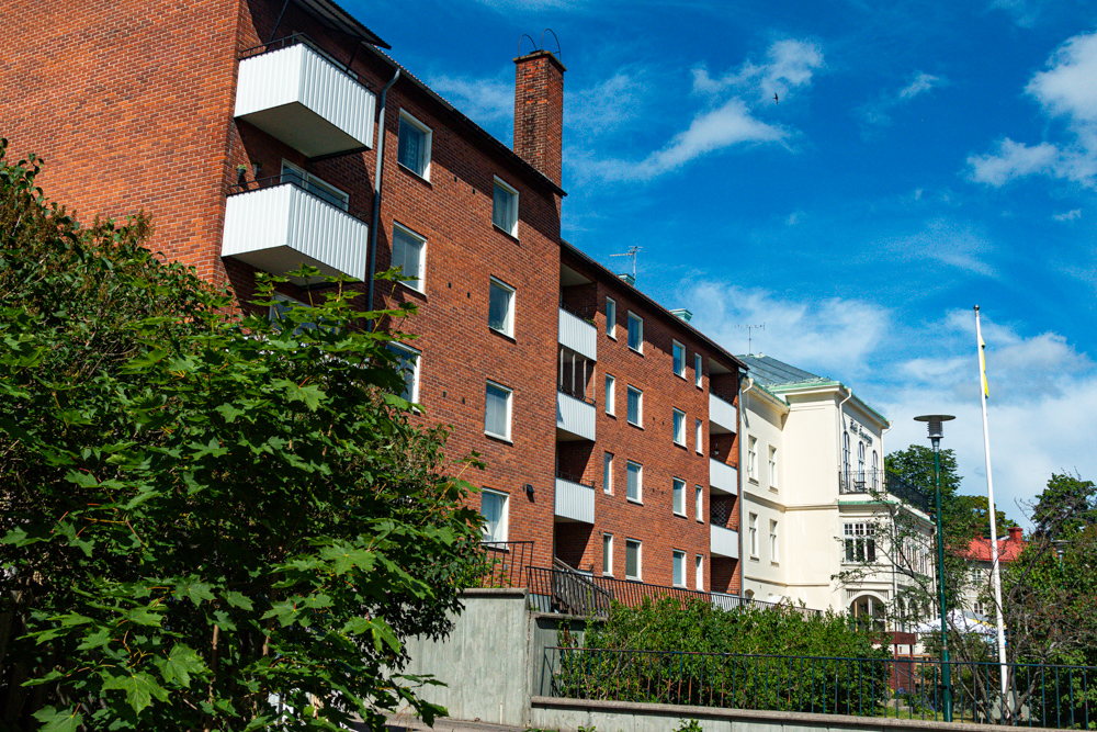 Centralt flerfamiljshus i 4 våningar.