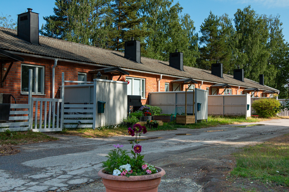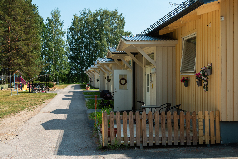 Radhus i lantlig miljö.